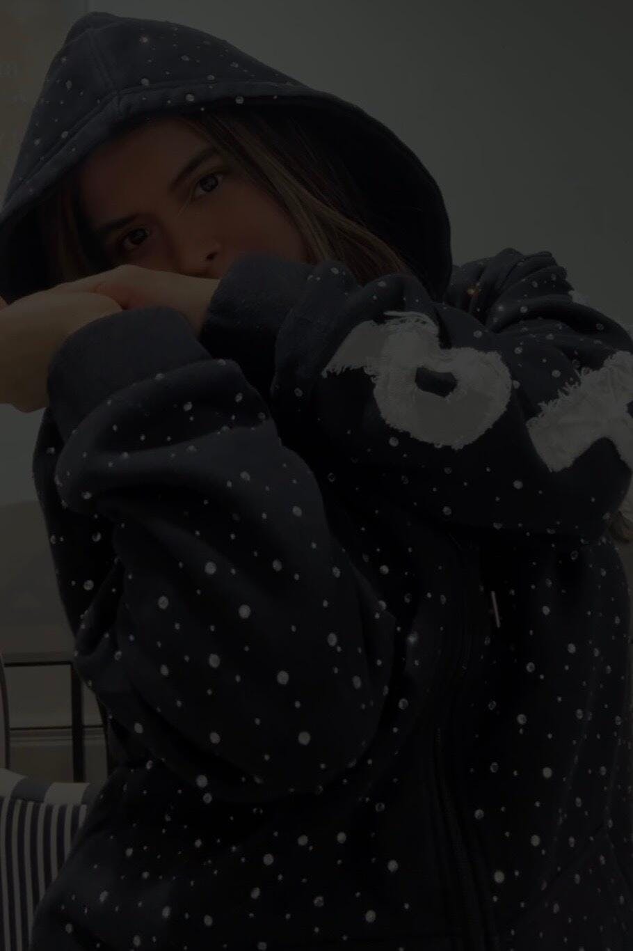 Rhinestone Hoodie Premium Black Zip-Up Streetwear / Chompiter 999